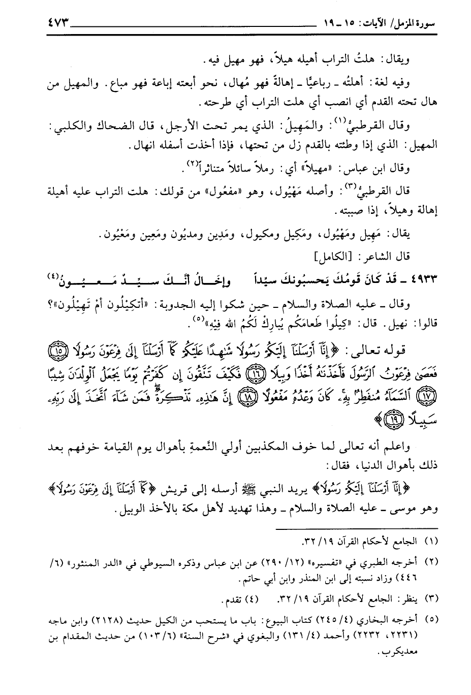 وقال القرطبيُّ: والمَهِيلُ: الذي يمر تحت الأرجل، قال الضحاك والكلبي: المهيل: الذي إذا وطئته بالقدم زل من تحتها، فإذا أخذت أسفله انهال.