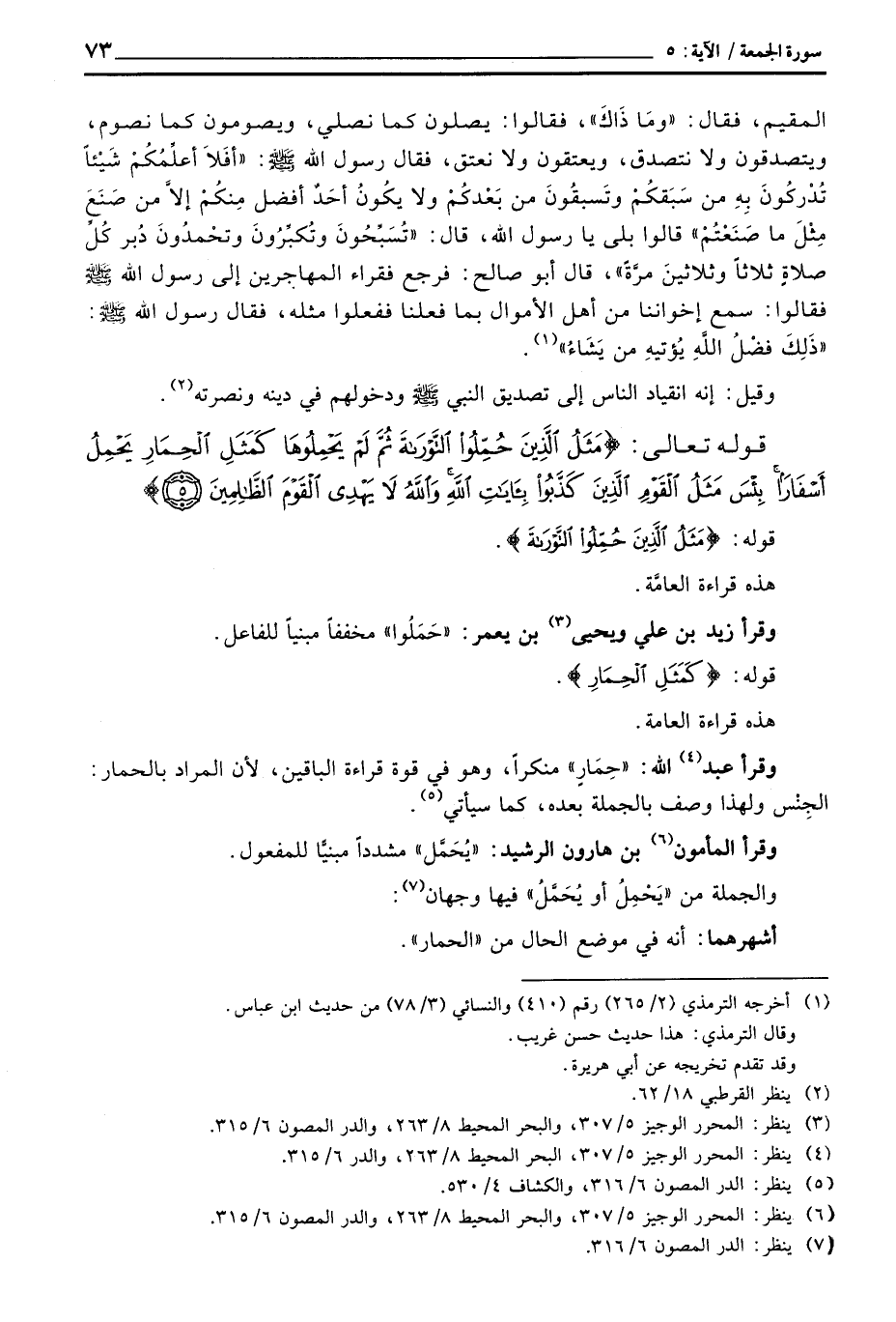 قوله: {مَثَلُ الذين حُمِّلُواْ التوراة} .