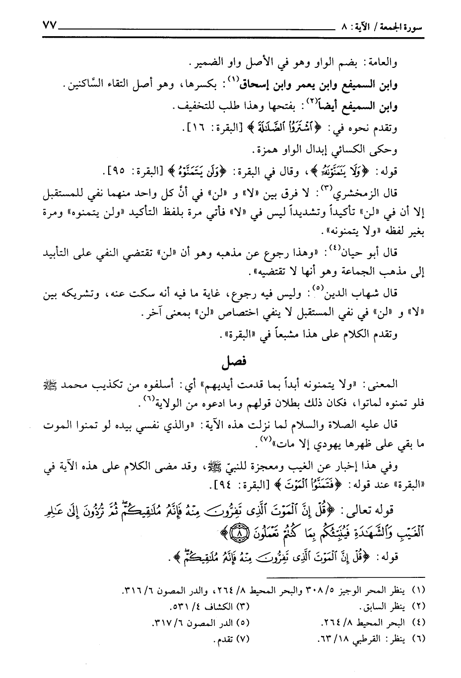 قوله: {وَلاَ يَتَمَنَّونَهُ} ، وقال في البقرة: {وَلَنْ يَتَمَنَّوْهُ} [البقرة: 95] .