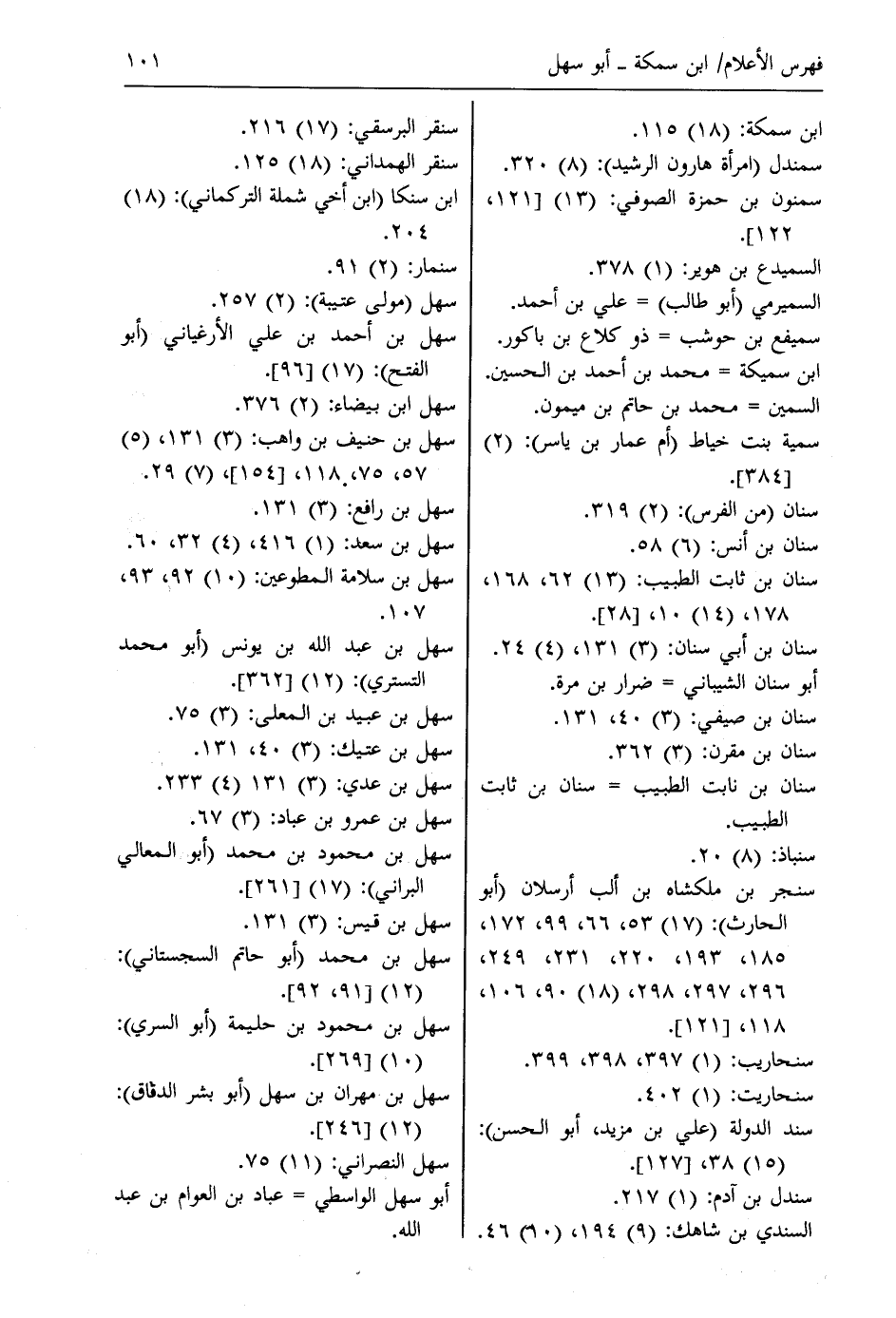 سنجر بن ملك شاه بن ألب أرسلان (أبو الحارث) : (17) 53، 66، 99، 172، 185، 193، 220، 231، 249، 296، 297، 298، (18) 90، 106، 118، [121] .