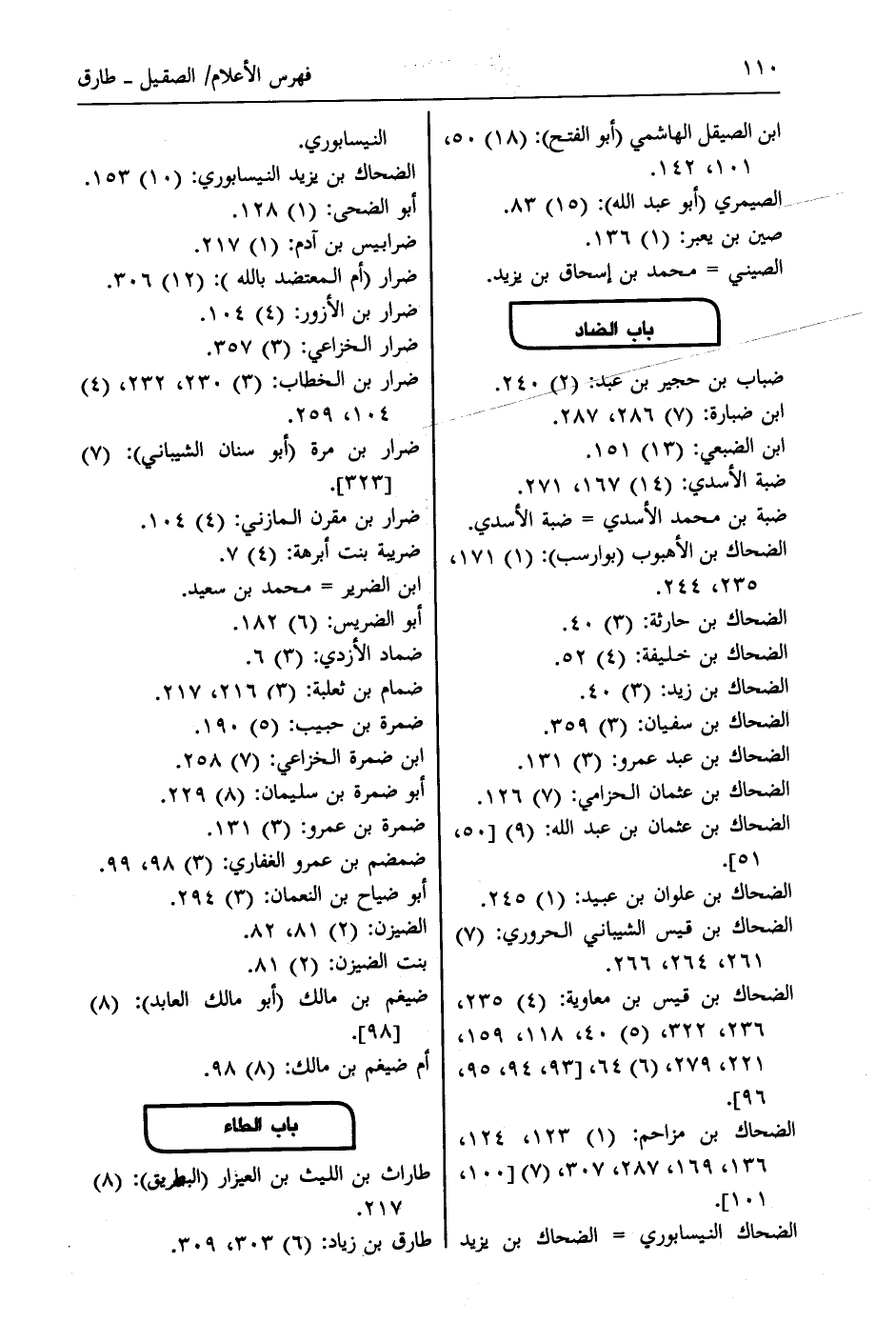 باب الضاد ضباب بن حجير بن عبد: (2) 240.