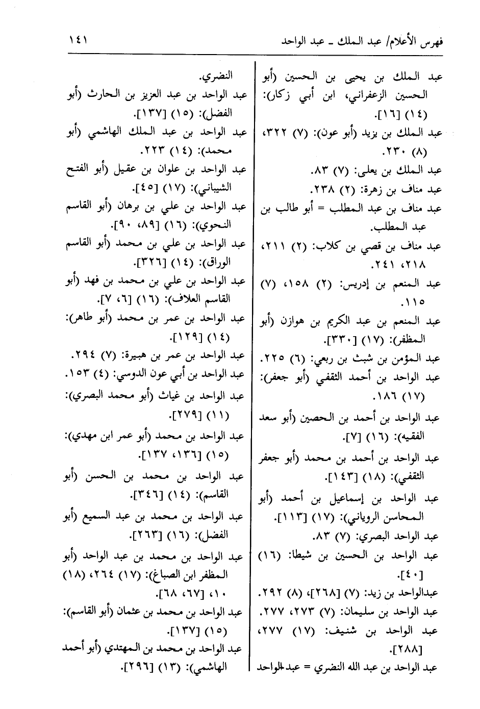 عبد الواحد بن عبد العزيز بن الحارث (أبو الفضل) : (15) [137] .