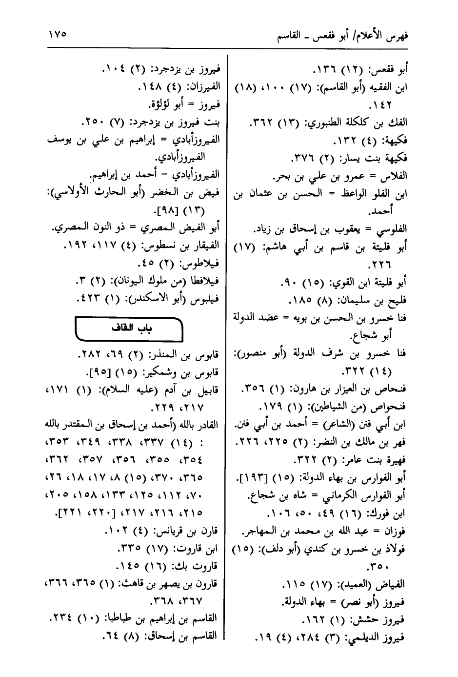 القادر باللَّه (أحمد بن إسحاق بن المقتدر باللَّه: (14) 337، 338، 349، 353، 354، 355، 356، 357، 362، 365، 370، (15) 8، 17، 18، 26، 70، 112، 125، 133، 158، 205، 215، 216، 217، [220، 221] .