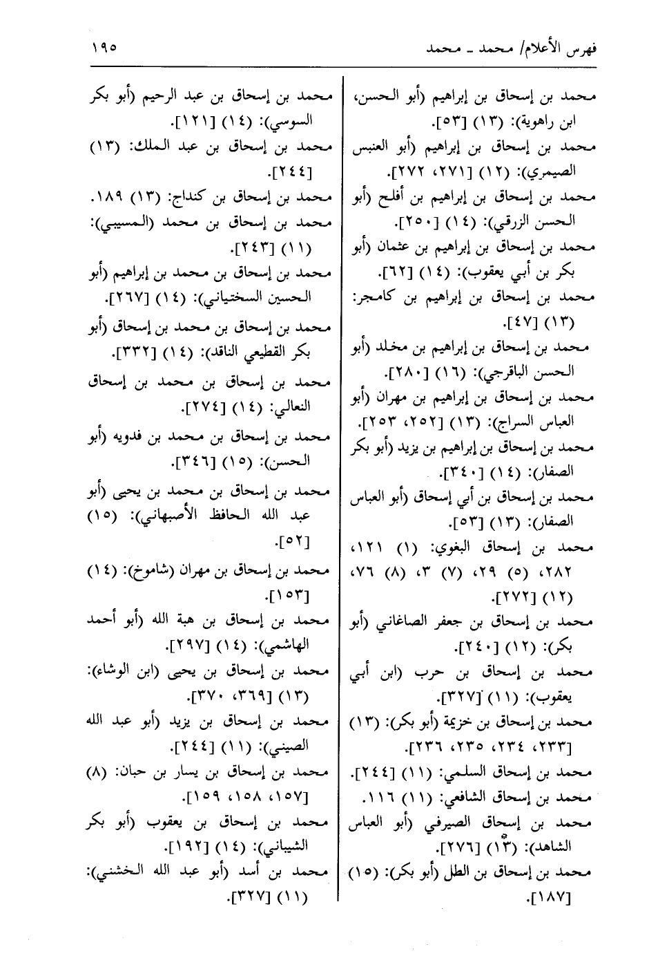 محمد بن إسحاق البغوي: (1) 121، 282، (5) 29، (7) 3، (8) 76، (12) [272] .