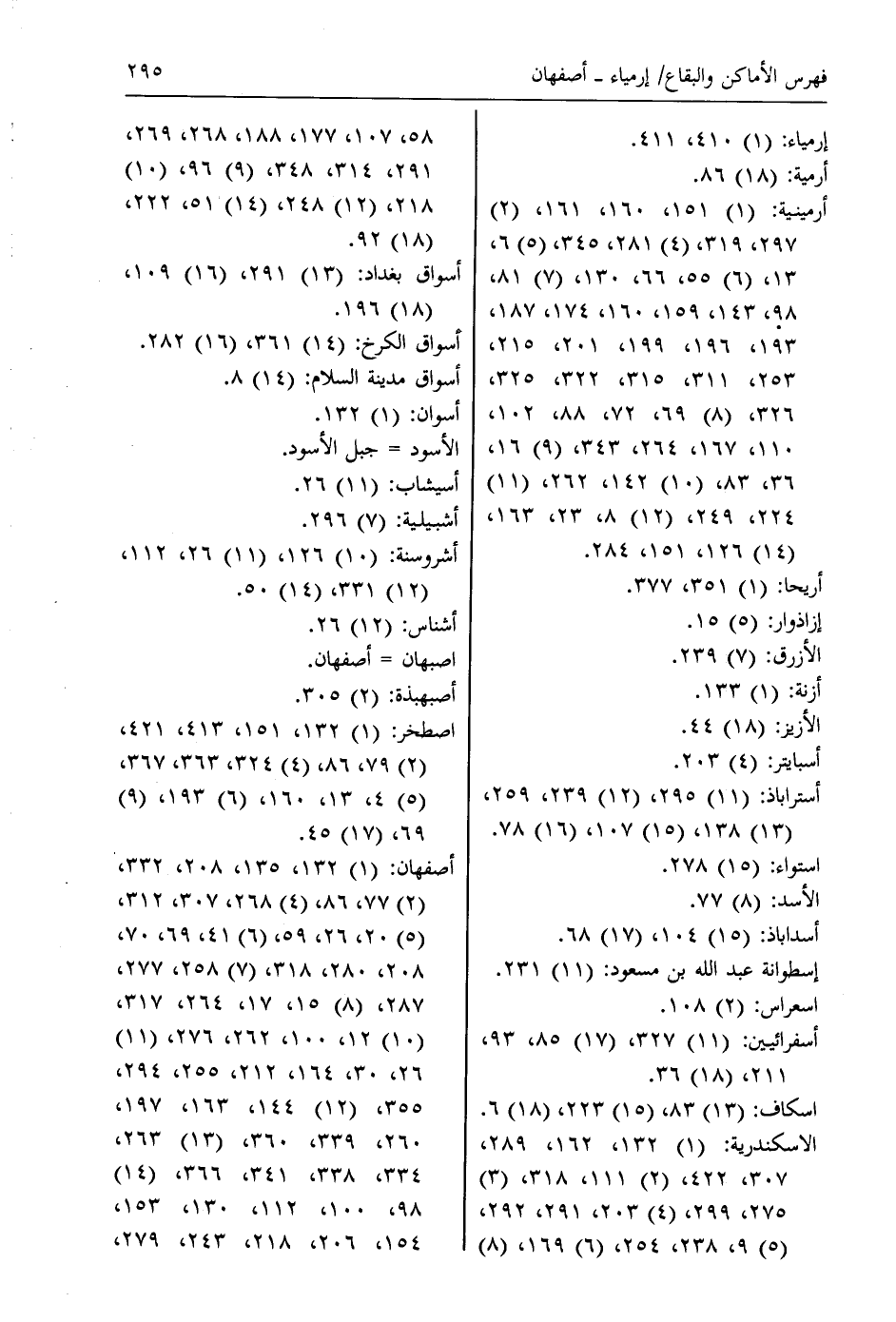 أصفهان: (1) 132، 135، 208، 332، (2) 77، 86، (4) 268، 307، 312، (5) 20، 26، 59، (6) 41، 69، 70، 208، 280، 318، (7) 258، 277، 287، (8) 15، 17، 264، 317، (10) 12، 100، 262، 276، (11) 26، 30، 164، 212، 255، 294، 355، (12) 144، 163، 197، 260، 339، 360، (13) 263، 334، 338، 341، 366، (14) 98، 100، 112، 130، 153، 154، 206، 218، 243، 279،