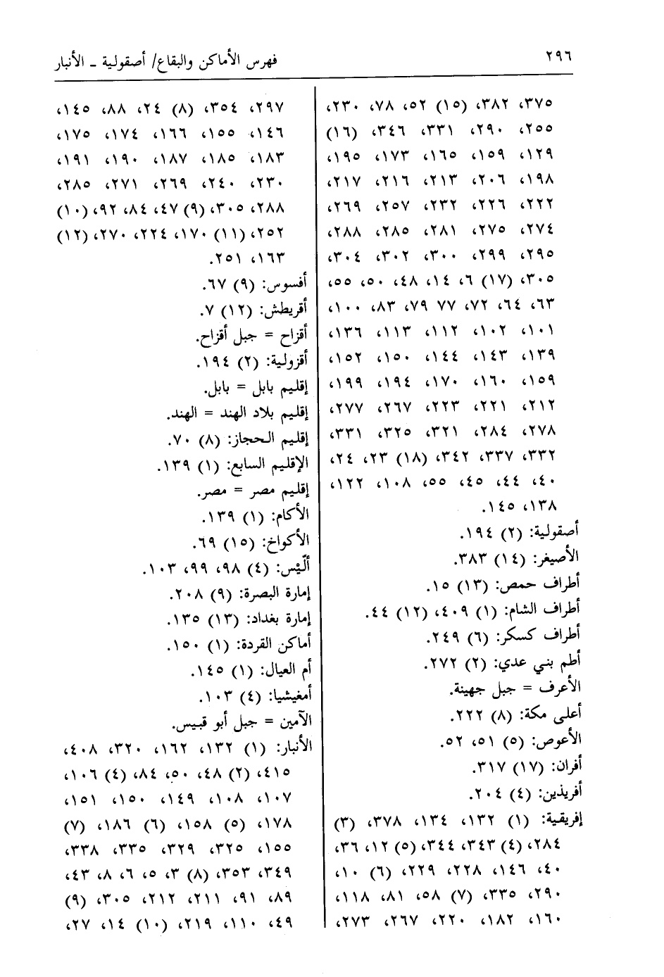 الأنبار: (1) 132، 162، 320، 408، 415، (2) 48، 50، 84، (4) 106، 107، 108، 149، 150، 151، 178، (5) 158، (6) 186، (7) 155، 325، 329، 335، 338، 349، 353، (8) 3، 5، 6، 8، 43، 89، 91، 211، 212، 305، (9) 49، 110، 219، (10) 14، 27،