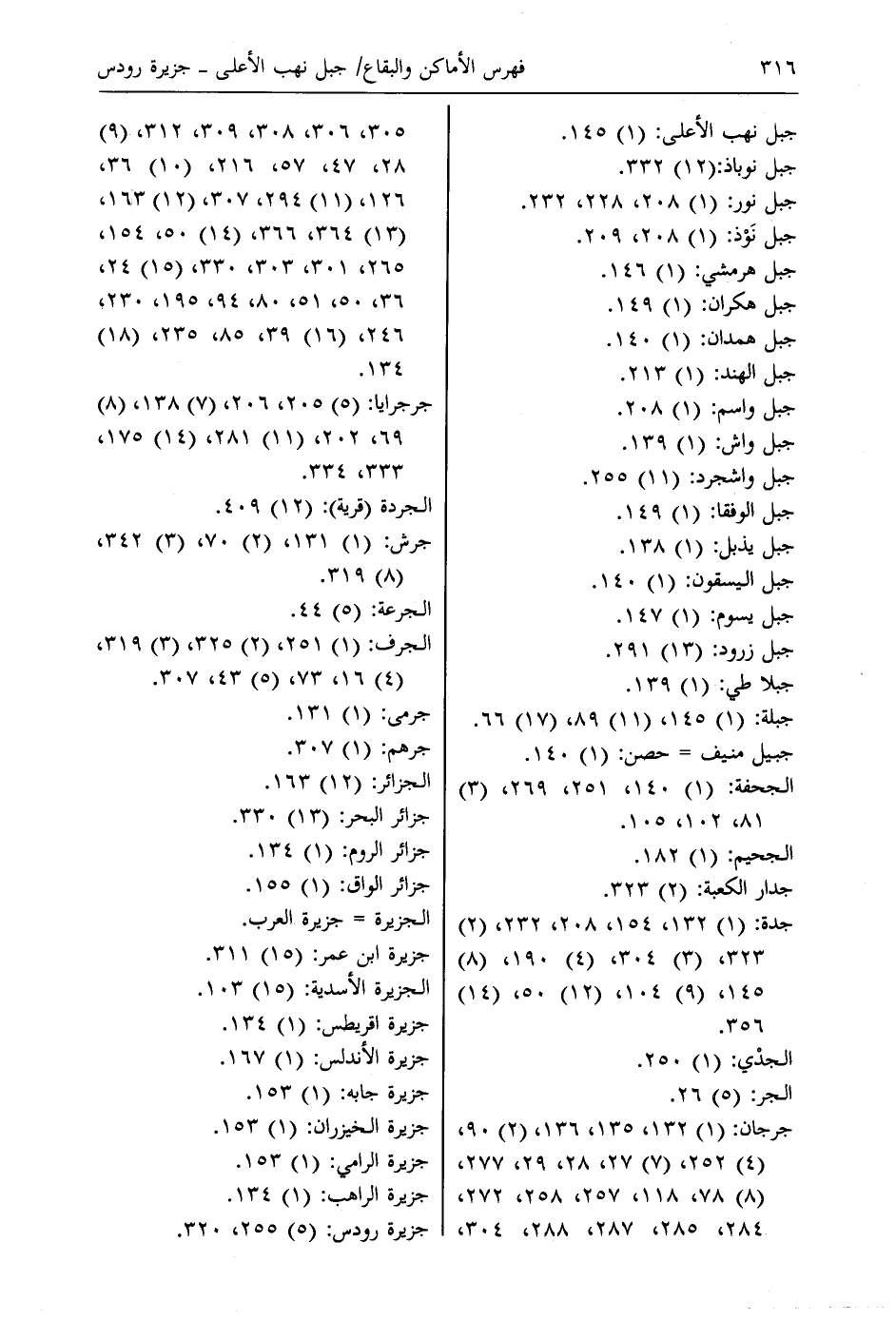 جرجان: (1) 132، 135، 136، (2) 90، (4) 252، (7) 27، 28، 29، 277، (8) 78، 118، 257، 258، 272، 284، 285، 287، 288، 304، 305، 306، 308، 309، 312، (9) 28، 47، 57، 216، (10) 36، 126، (11) 294، 307، (12) 163، (13) 364، 366، (14) 50، 154، 265، 301، 303، 330، (15) 24، 36، 50، 51، 80، 94، 195، 230، 246، (16) 39، 85، 235، (18) 134.