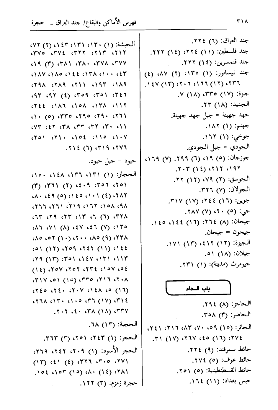الحجاز: (1) 131، 136، 148، 150، 251، 356، 409، (2) 361، (3) 282، (4) 101، 145، (5) 49، 80، 98، 158، 162، 219، 261، 266، 328، (6) 6، 13، 23، 29، 63، 135، (7) 46، 47، (8) 71، 86، 238، (9) 85، 200، (10) 52، 85، 144، (11) 242، 259، (12) 51، 113، 131، 147، 351، (13) 29، 54، 157، 234، 252، 257، (14) 208، 216، 335، (15) 51، 317، (16) 5، 148، 207، 240، 245، 314، (17) 36، 105، 130، 268، 337، (18) 38، 40، 202.