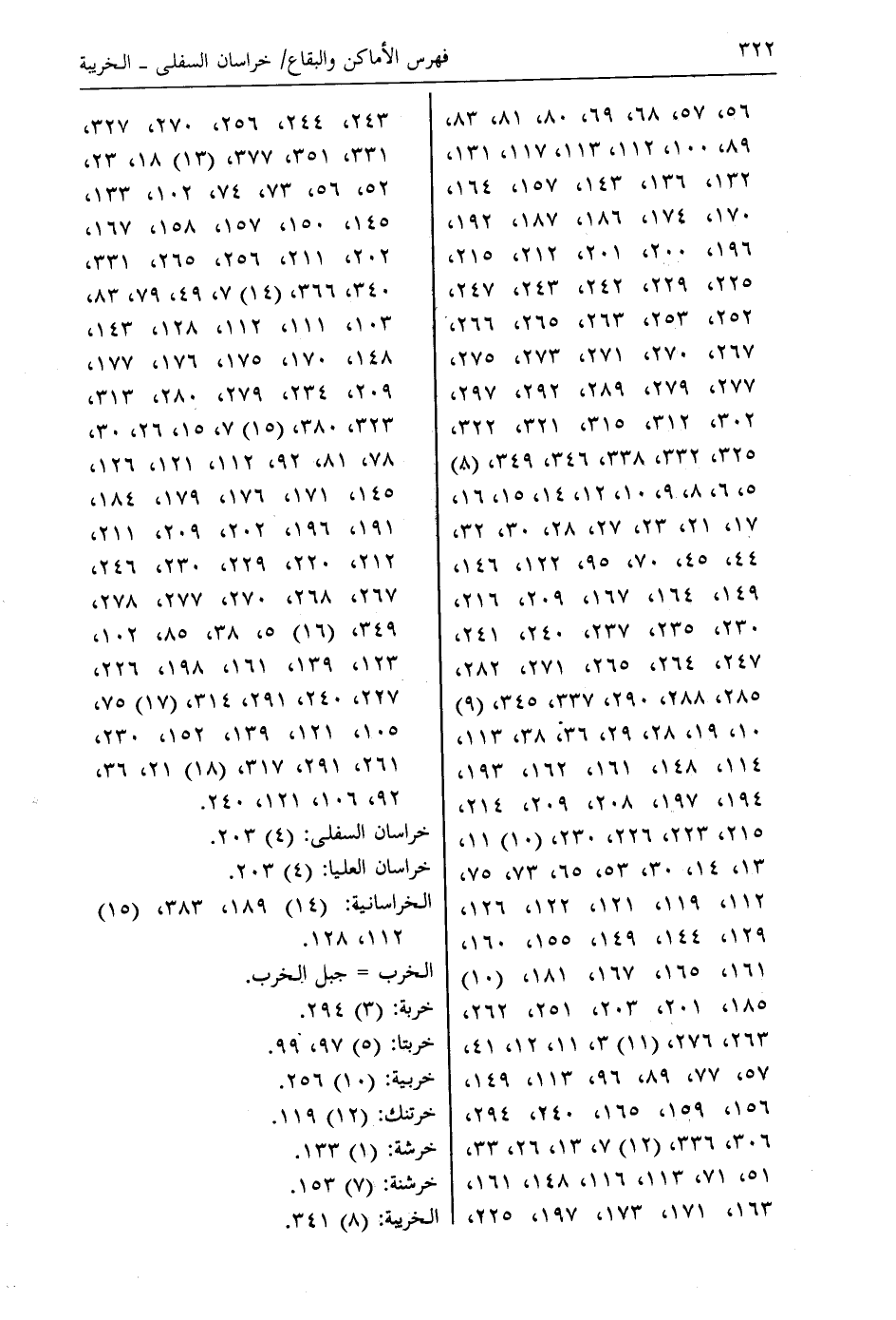 الخراسانية: (14) 189، 383، (15) 112، 128.
