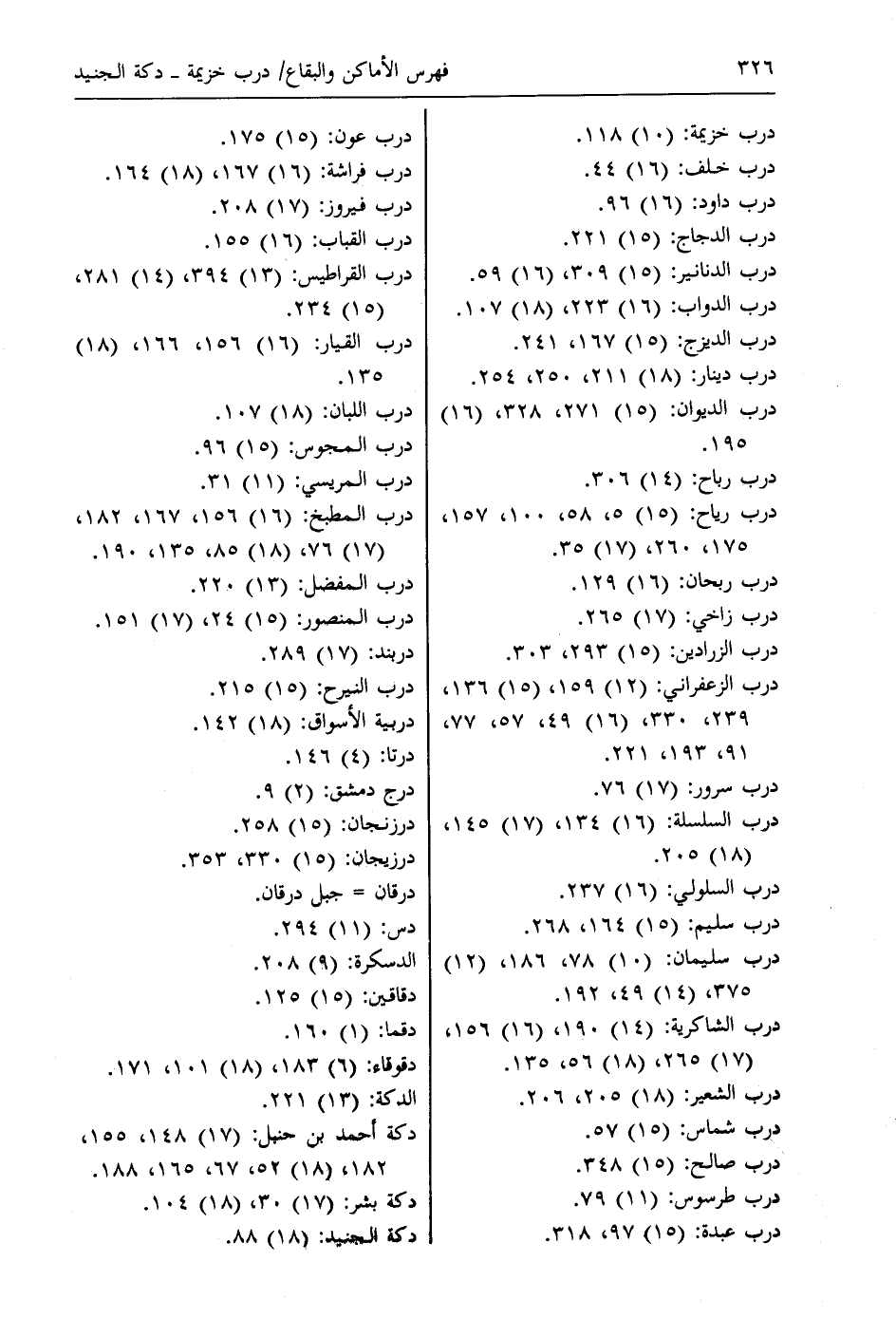 درب الزعفرانيّ: (12) 159، (15) 136، 239، 330، (16) 49، 57، 77، 91، 193، 221.