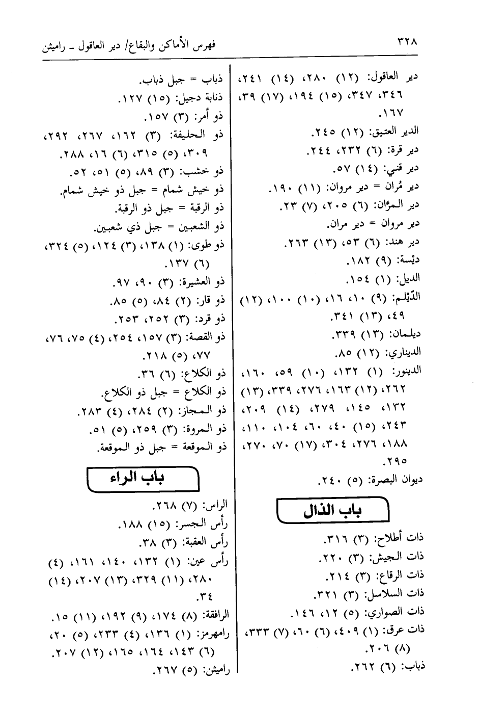 دير العاقول: (12) 280، (14) 241، 246، 347، (15) 194، (17) 39، 167.