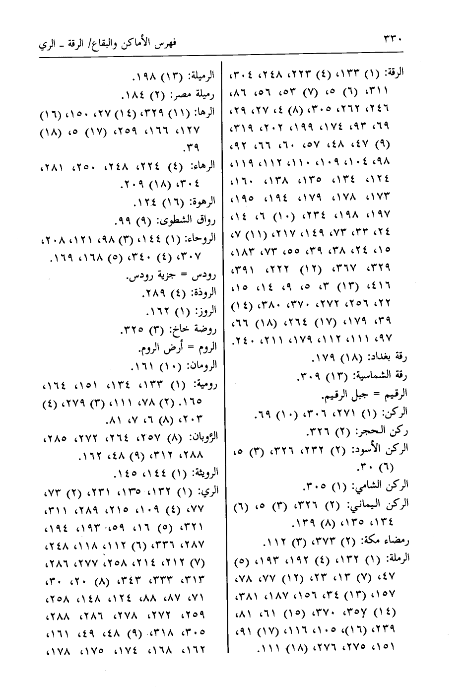 الرقة: (1) 133، (4) 223، 248، 304، 311، (6) 5، (7) 53، 56، 86، 246، 262، 305، (8) 4، 27، 29، 69، 93، 174، 199، 202، 319، (9) 47، 48، 57، 60، 66، 92، 98، 104، 109، 110، 112، 119، 124، 134، 135، 138، 160، 173، 178، 179، 194، 195، 197، 198، 234، (10) 6، 14، 24، 33، 73، 149، 217، (11) 7، 15، 24، 38، 39، 55، 73، 183، 329، 367، (12) 222، 391، 416، (13) 3، 5، 9، 14، 15، 22، 256، 272، 370، 380، (14) 39، 179، (17) 264، (18) 66، 97، 111، 112، 179، 211، 240.