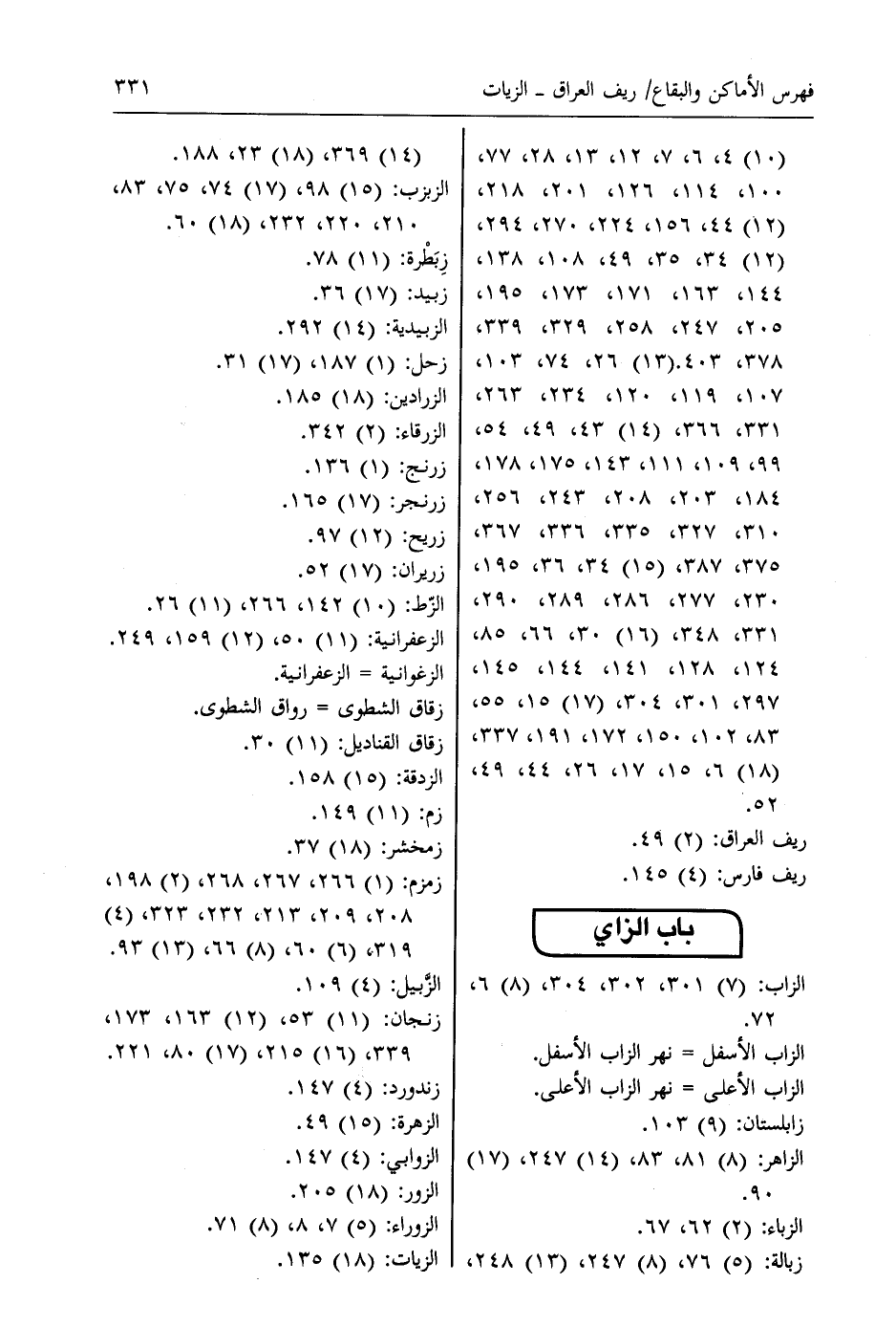 باب الزاي الزاب: (7) 301، 302، 304، (8) 6، 72.
