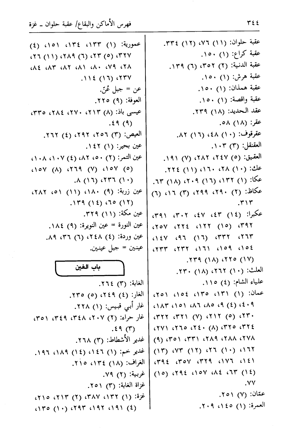 عمان: (1) 131، 135، 154، 251، 409، (4) 9، 85، 86، 151، 183، 230، (5) 212، (7) 321، 322، 324، 325، (8) 240، 265، 271، 278، 288، 289، 331، 351، (9) 162، (10) 26، (12) 73، (13) 141، 176، 329، 357، 394، (14) 63، 84، 157، 294، (15) 77.
