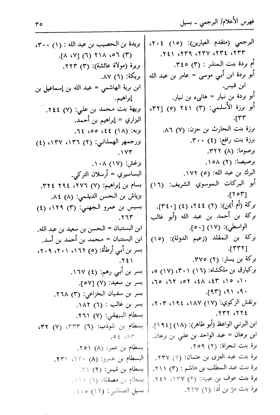 برة بنت مرّ بن أد: (2) 227. بريدة بن الحصيب بن عبد الله: (1) 300، (3) 56، 218 (6) [7، 8] .