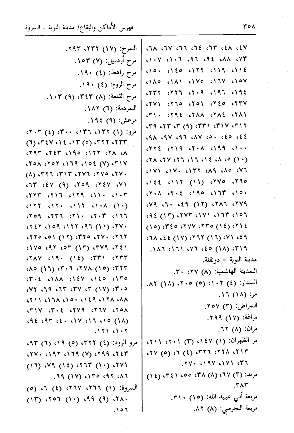 مرو: (1) 132، 136، 300، (4) 203، 233، 322، (5) 13، 14، 347، (6) 8، 28، 122، 195، 243، 293، 317، (7) 154، 169، 252، 258، 270، 275، 276، 313، 326، (8) 71، 247، 259، (9) 47، 63، 103، 110، 129، 216، 223، (10) 108، 112، 120، 122، 166، 203، 210، 236، 259، 270، (11) 96، 122، 159، 242، 262، 270، 325، (12) 51، 225، 241، 379، (13) 53، 92، 175، 233، 331، (14) 190، 287، 323، (15) 278، 306، (16) 85، 135، 145، 147، 188، 304، 305، (17) 3، 37، 63، 69، 72، 88، 128، 149، 150، 168، 211، 258، 267، 279، 304، 317، (18) 15، 16، 17، 40، 93، 94، 102، 121.
