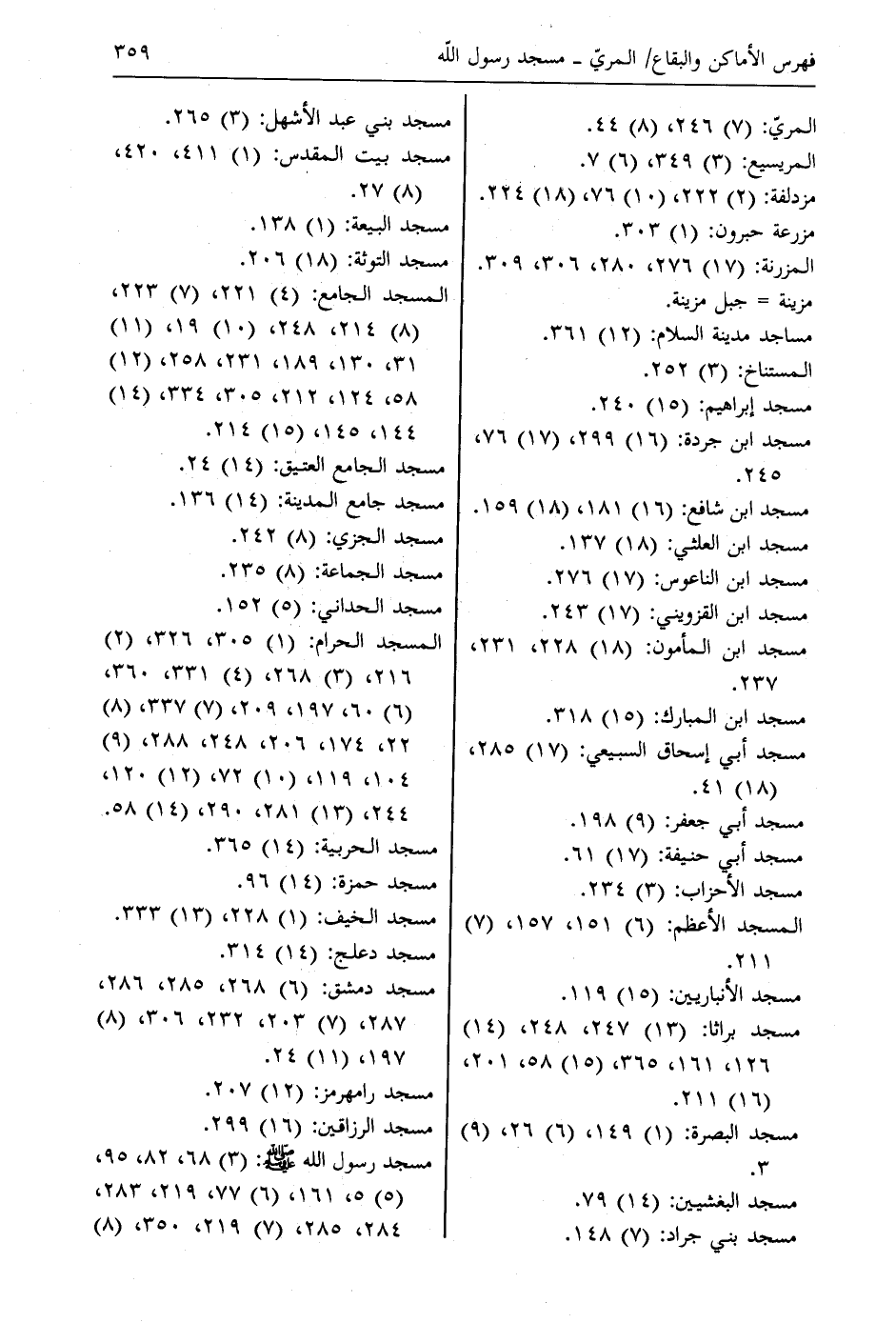 المسجد الحرام: (1) 305، 326، (2) 216، (3) 268، (4) 331، 360، (6) 60، 197، 209، (7) 337، (8) 22، 174، 206، 248، 288، (9) 104، 119، (10) 72، (12) 120، 244، (13) 281، 290، (14) 58.