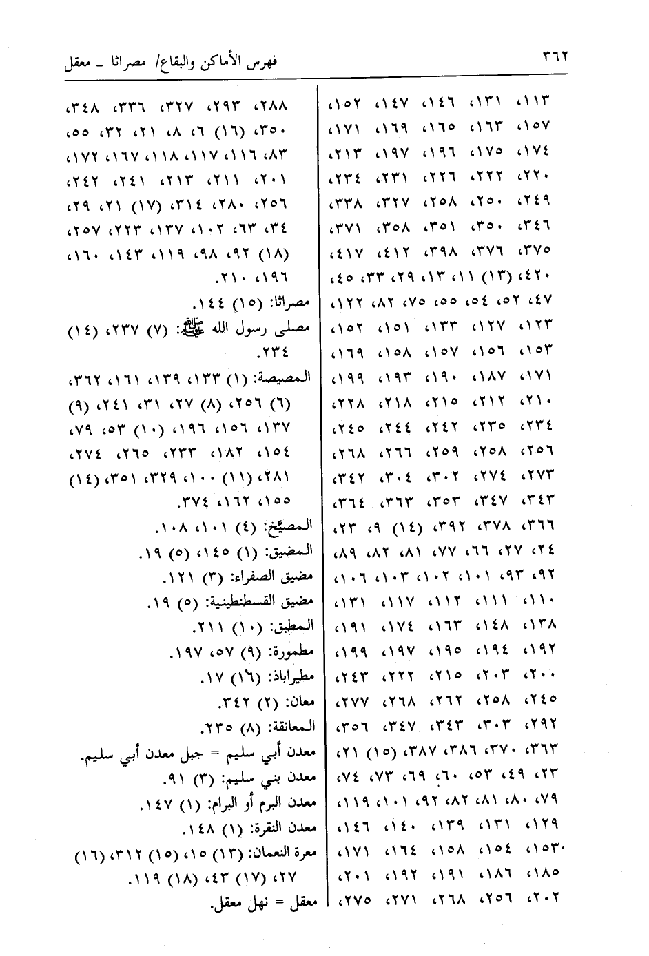 المصيصة: (1) 133، 139، 161، 362، (6) 256، (8) 27، 31، 241، (9) 137، 156، 196، (10) 53، 79، 154، 182، 233، 265، 274، 281، (11) 100، 329، 351، (14) 155، 162، 374.