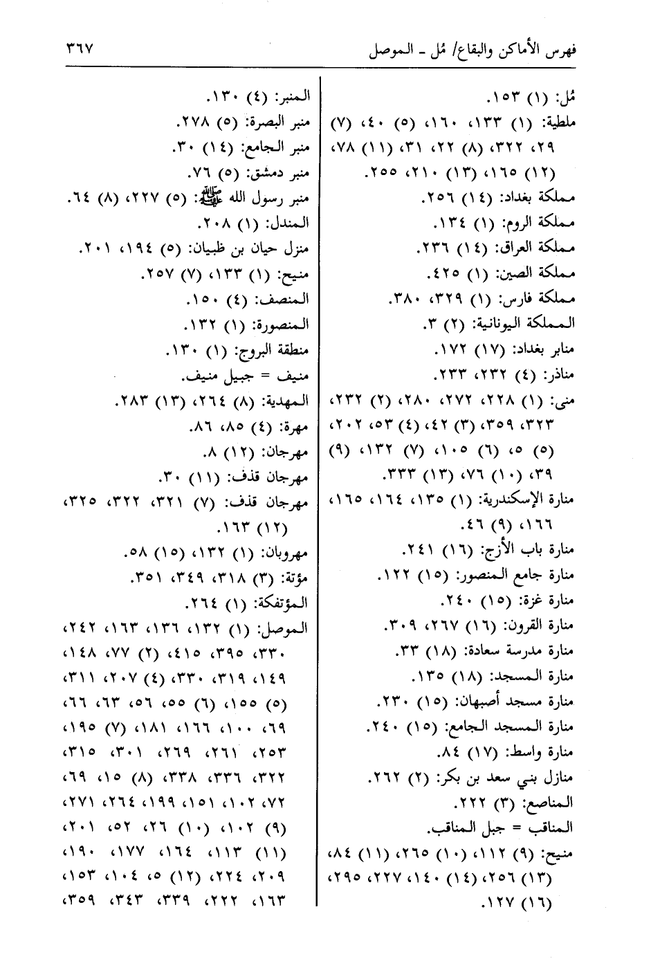 الموصل: (1) 132، 136، 163، 242، 330، 395، 415، (2) 77، 148، 149، 319، 330، (4) 207، 311، (5) 155، (6) 55، 56، 63، 66، 69، 100، 166، 181، (7) 195، 253، 261، 269، 301، 315، 322، 336، 338، (8) 15، 69، 72، 102، 151، 199، 264، 271، (9) 102، (10) 26، 52، 201، (11) 113، 164، 177، 190، 209، 224، (12) 5، 104، 153، 163، 222، 339، 343، 359 ص،