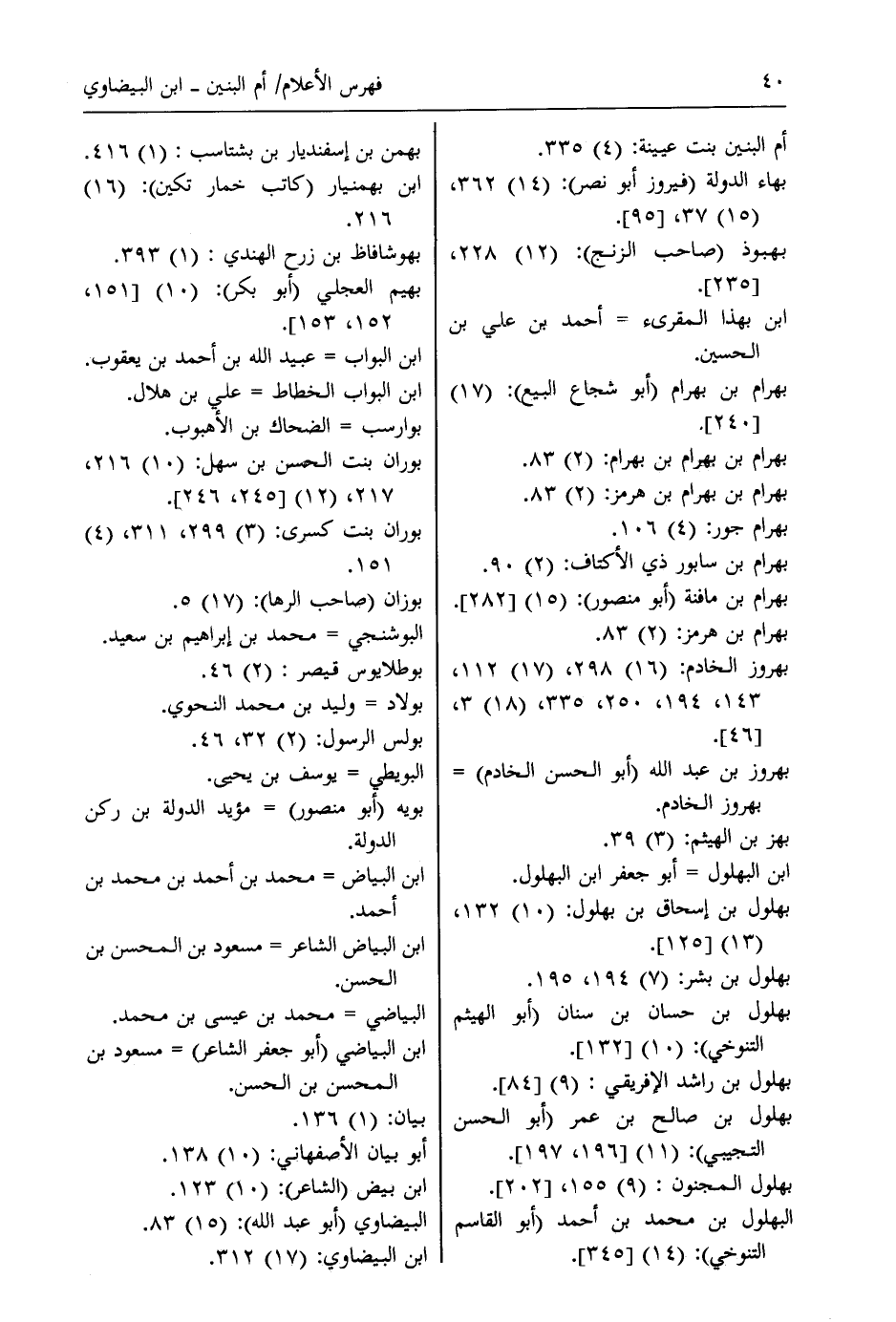 البهلول بن محمد بن أحمد (أبو القاسم التنوخي) : (14) [345] . بهمن بن إسفنديار بن بشتاسب: (1) 416.