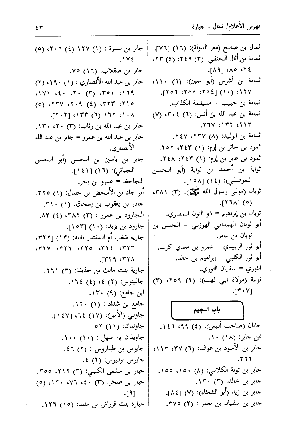 جابر بن سفيان بن معمر: (2) 375. جابر بن سمرة: (1) 127 (4) 206، (5) 174.