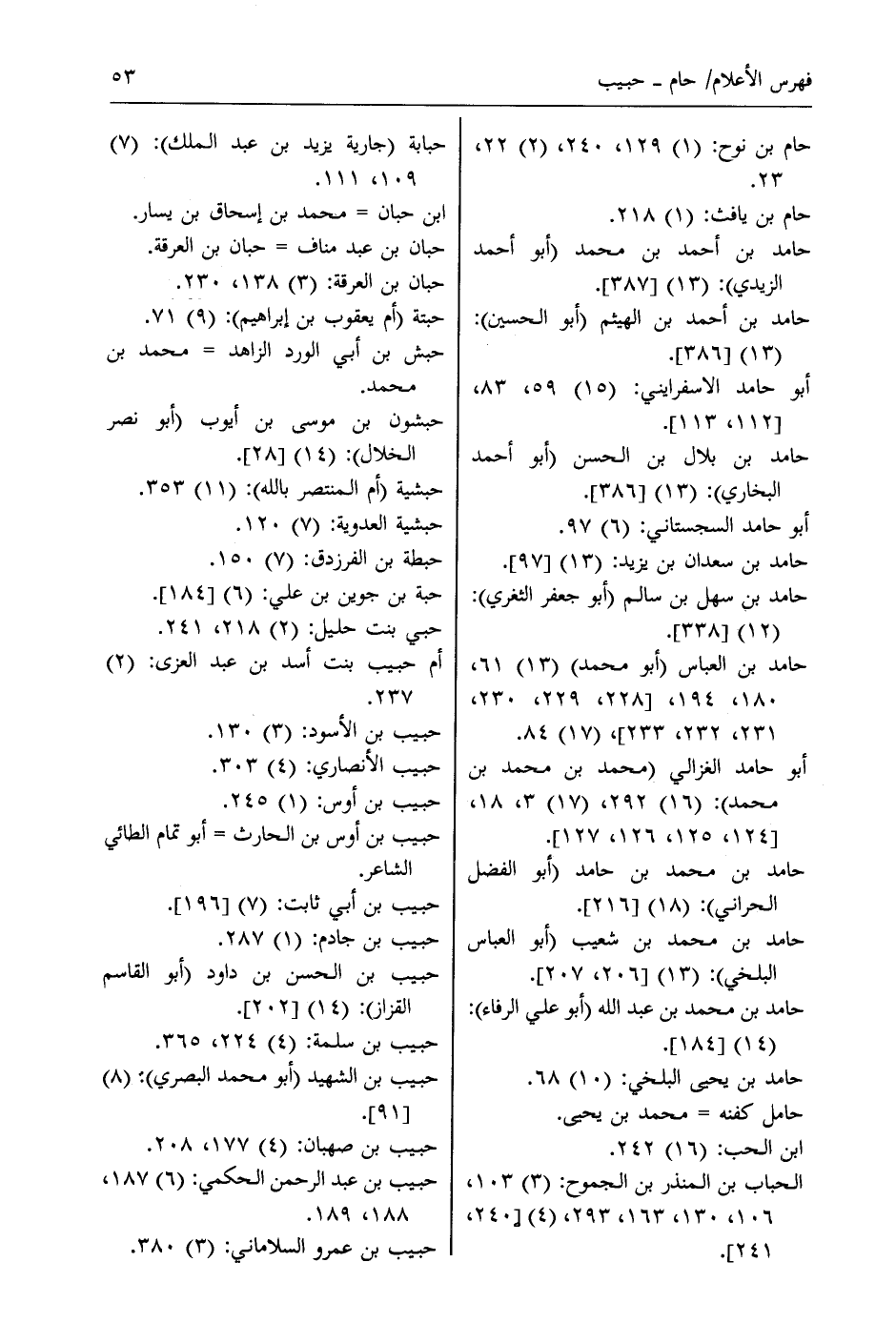الحباب بن المنذر بن الجموح: (3) 103، 106، 130، 163، 293، (4) [240، 241] . حبابة (جارية يزيد بن عبد الملك) : (7) 109، 111.