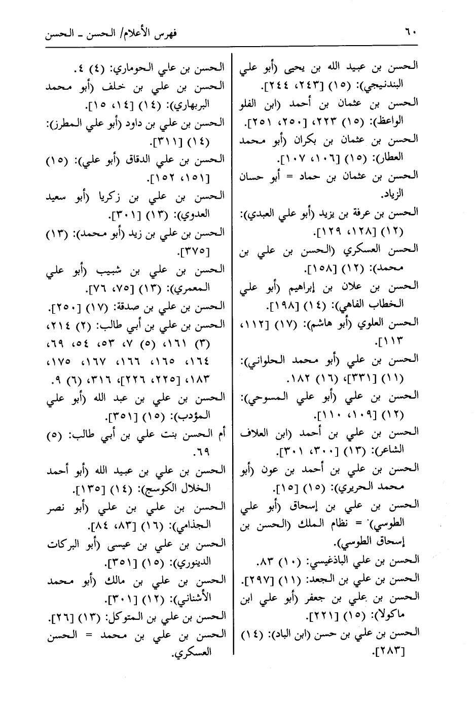 الحسن بن علي بن حسن (ابن الباد) : (14) [283] . الحسن بن علي الحوماري: (4) 4.