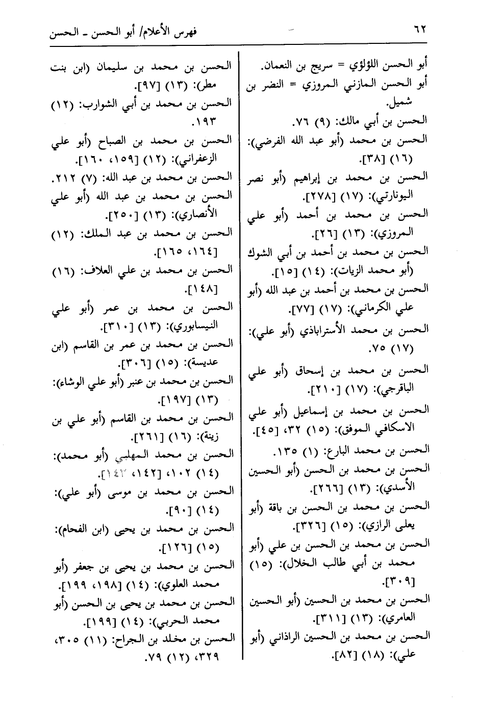 الحسن بن محمد بن الحسين الراذاني (أبو علي) : (18) [82] . الحسن بن محمد بن سليمان (ابن بنت مطر) : (13) [97] .