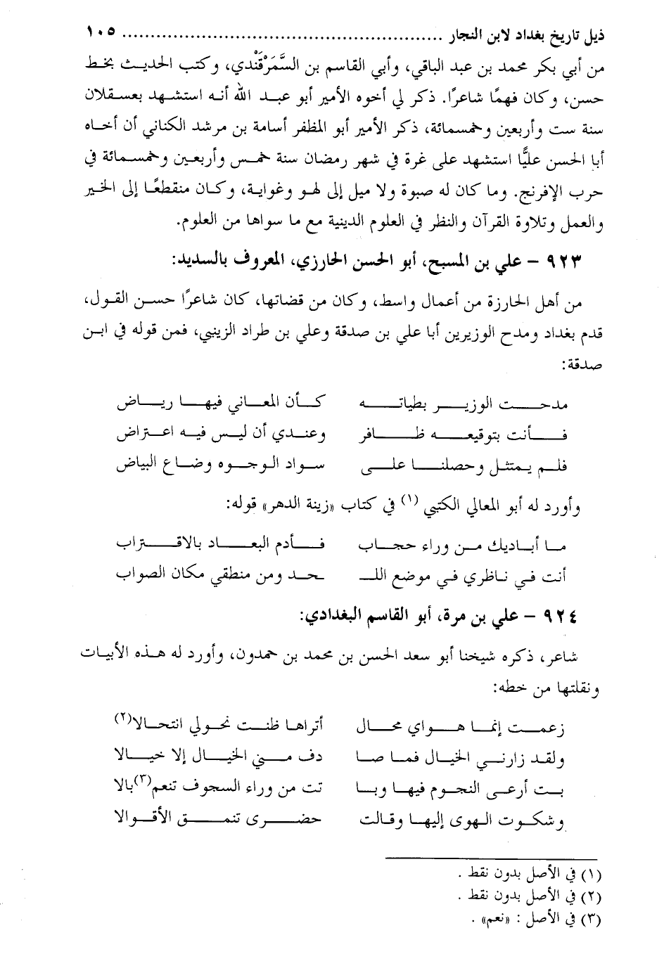 923- علي بن المسبح، أبو الحسن الحارزي، المعروف بالسديد:
