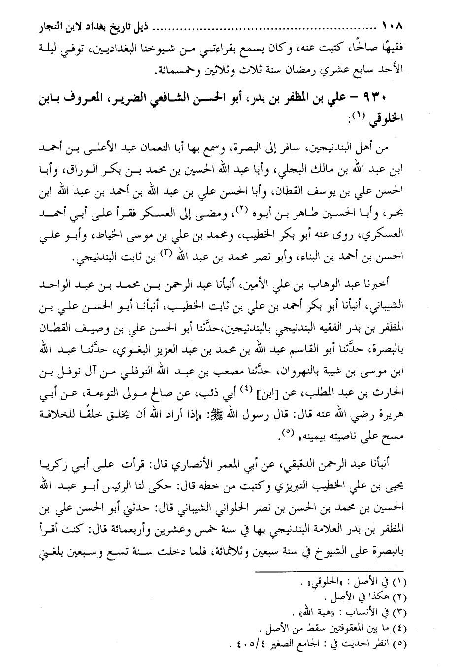 930- علي بن المظفر بن بدر، أبو الحسن الشافعي الضرير، المعروف بابن الخلوقي [1] :