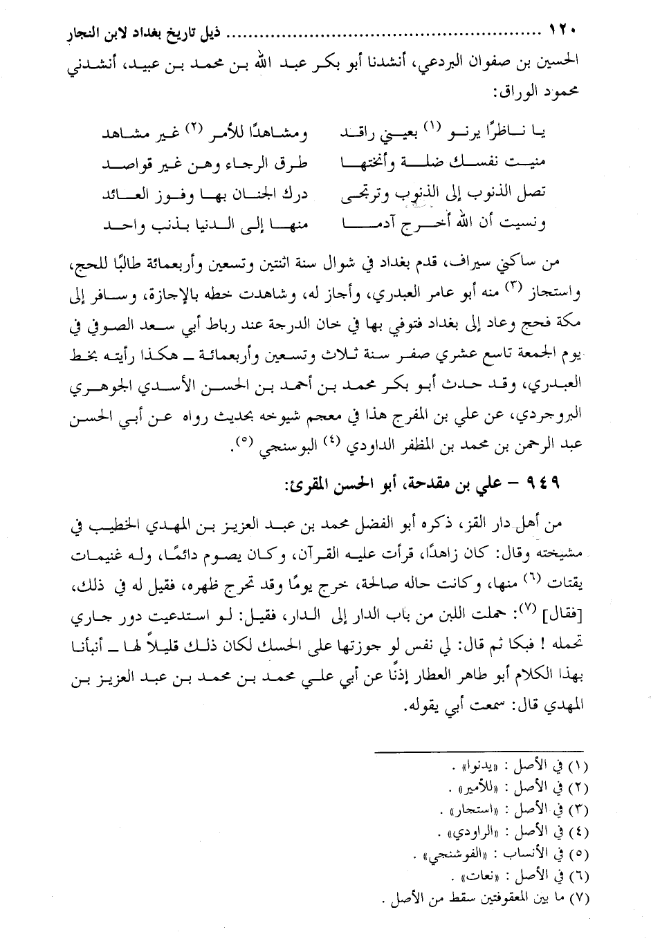 الحسين بن صفوان البردعي، أنشدنا أَبُو بَكْرٍ عَبْدُ اللَّهِ بْنُ مُحَمَّدِ بْنِ عبيد، أنشدني محمود الوراق: