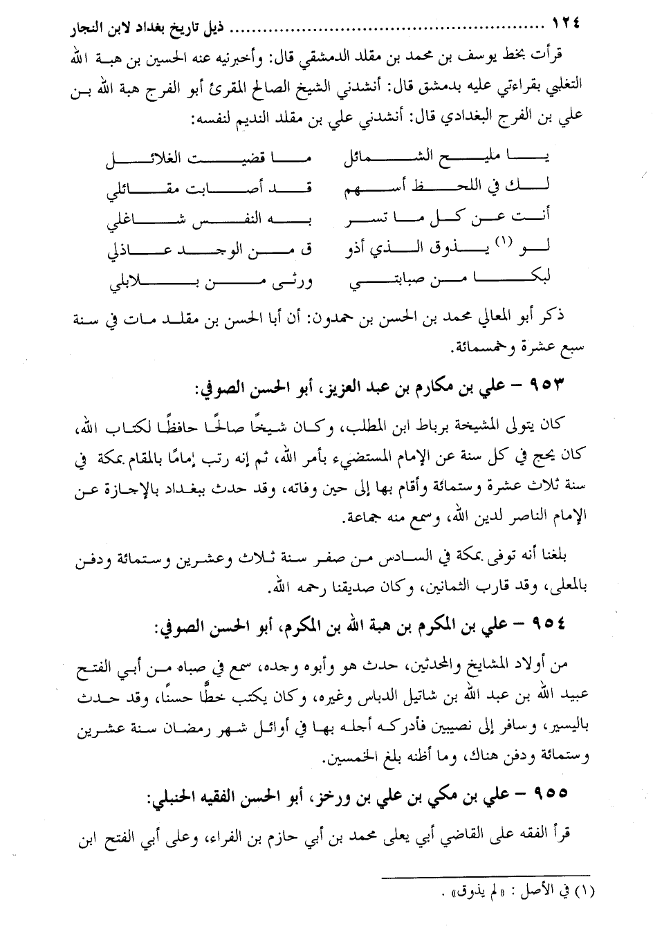 قرأت بخط يوسف بن محمد بن مقلد الدمشقي قال: وأخبرنيه عنه الحسين بن هبة الله التغلبي بقراءتي عليه بدمشق قال: أنشدني الشيخ الصالح المقرئ أبو الفرج هبة الله بن علي بن الفرج البغدادي قال: أنشدني علي بن مقلد النديم لنفسه: