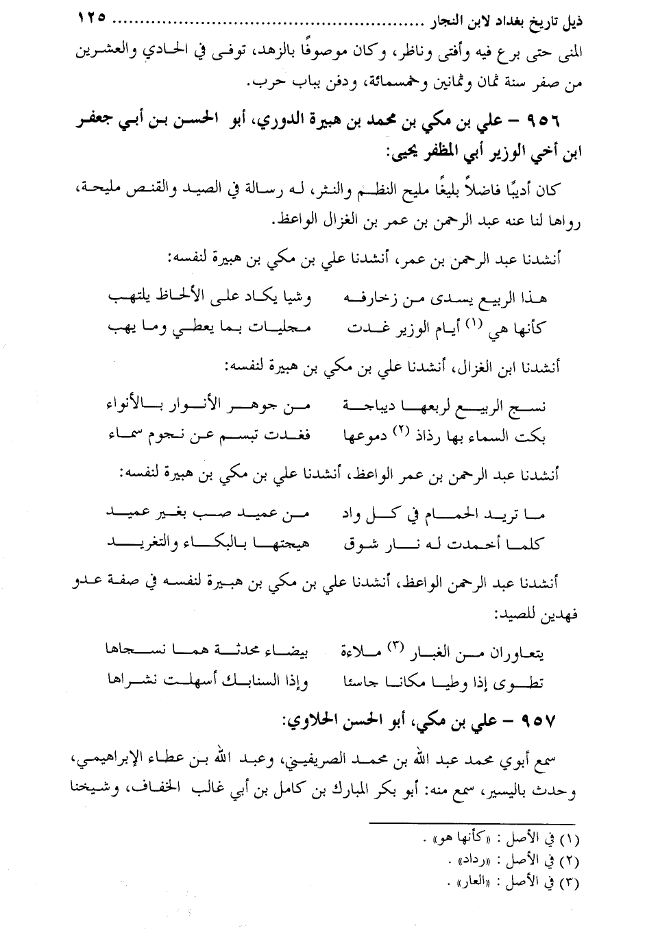 956- علي بن مكي بن محمد بن هبيرة الدوري، أبو الحسن بن أبي جعفر ابن أخي الوزير أبي المظفر يحيى: