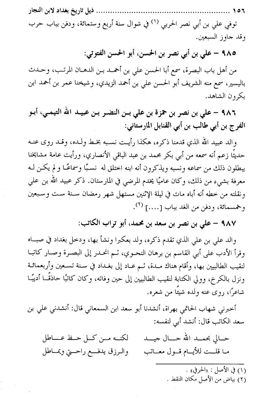 987- علي بن نصر بن سعد بن محمد، أبو تراب الكاتب: