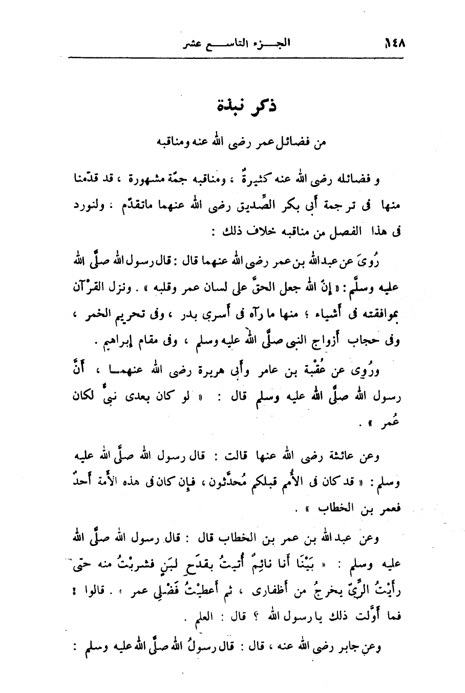 ذكر نبذة من فضائل عمر رضى الله عنه ومناقبه