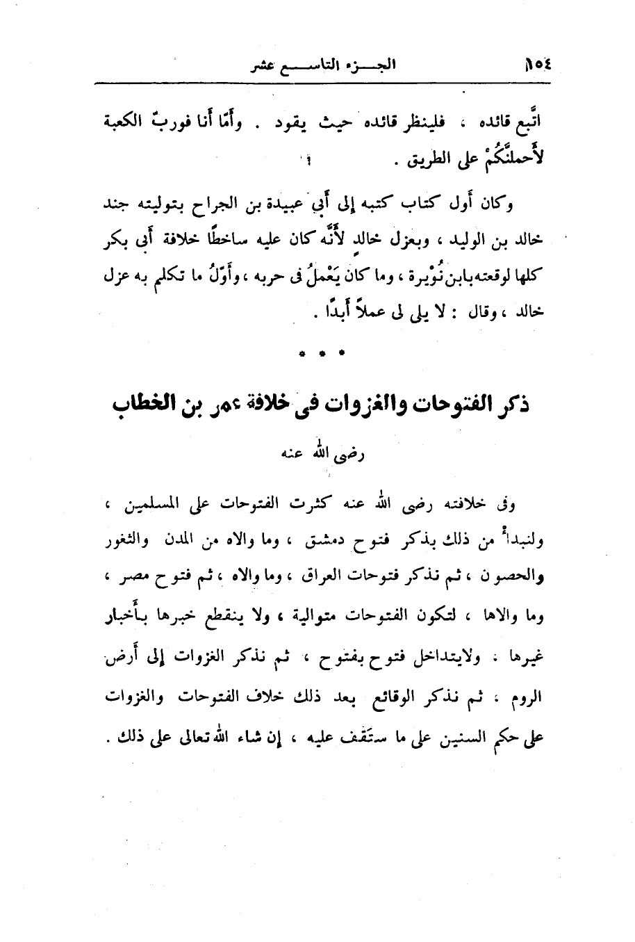 وفى خلافته رضى الله عنه كثرت الفتوحات على المسلمين، ولنبدأ من ذلك بذكر فتوح دمشق، وما والاه من المدن والثغور والحصون، ثم نذكر فتوحات العراق، وما والاه، ثم فتوح مصر، وما والاها، لتكون الفتوحات متوالية، ولا ينقطع خبرها بأخبار غيرها، ولا يتداخل فتوح بفتوح، ثم نذكر الغزوات إلى أرض الروم، ثم نذكر الوقائع بعد ذلك خلاف الفتوحات والغزوات على حكم السنين على ما ستقف عليه، إن شاء الله تعالى على ذلك.