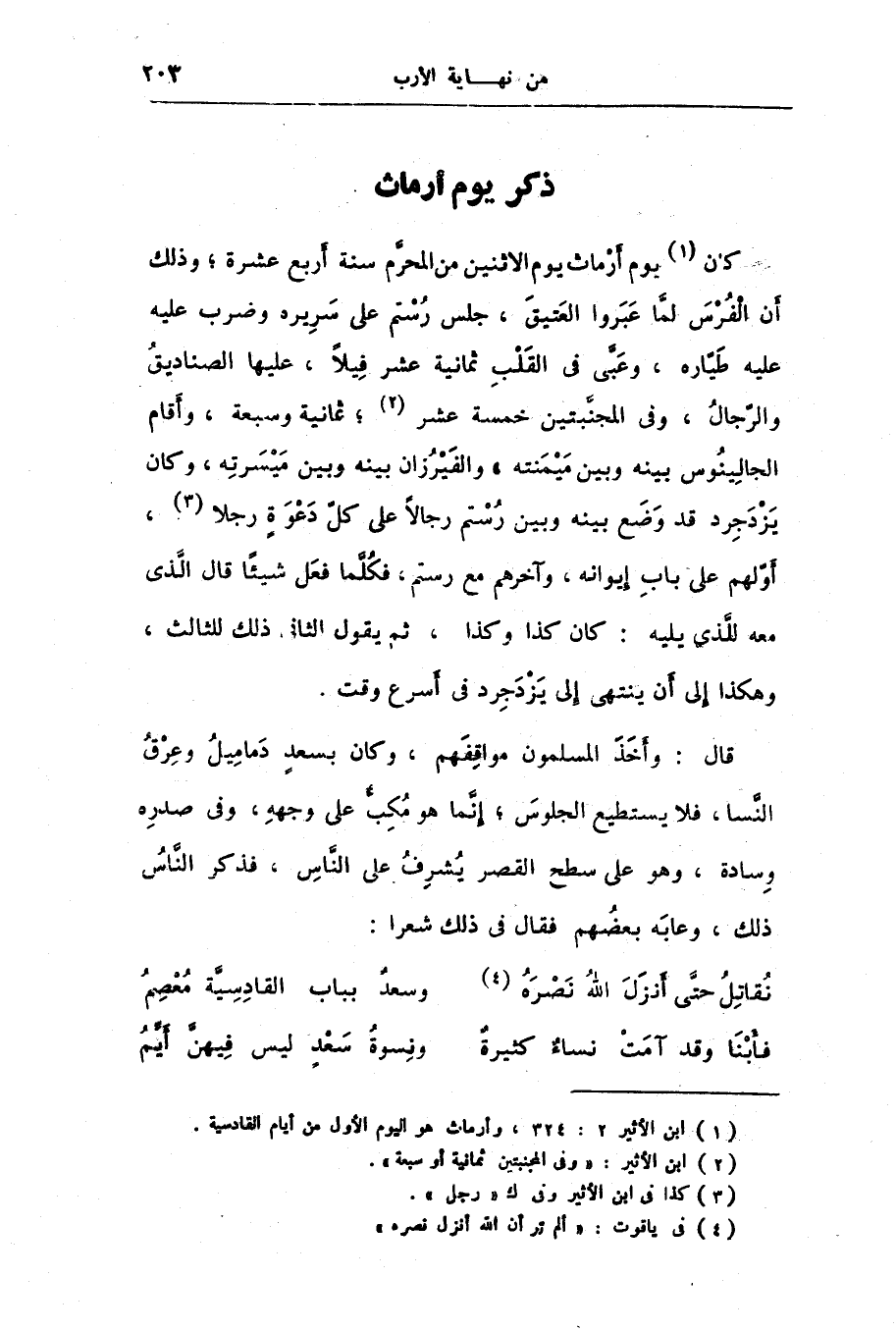 [1] ابن الأثير 2: 324، وأرماث هو اليوم الأول من أيام القادسية.