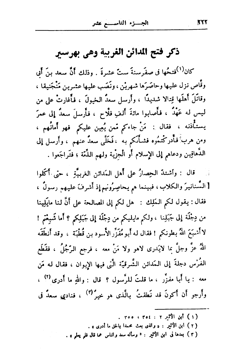 [3] بعدها فى ابن الأثير: «وسأله سعد والناس عما قال فلم يعلم» .
