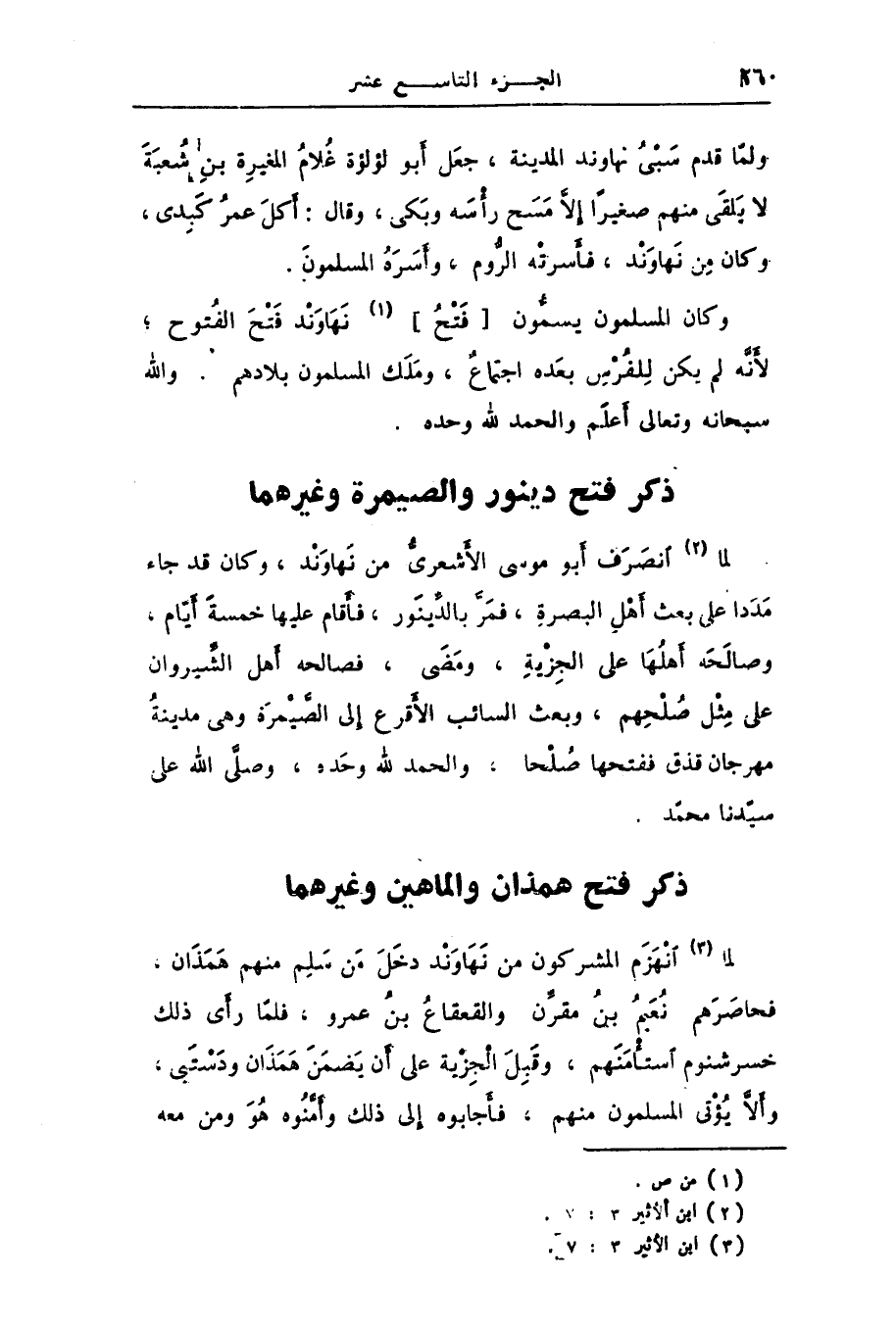 وكان المسلمون يسمّون [فتح] [1] نهاوند فتح الفتوح؛ لأنّه لم يكن للفرس بعده اجتماع، وملك المسلمون بلادهم. والله سبحانه وتعالى أعلم والحمد لله وحده.