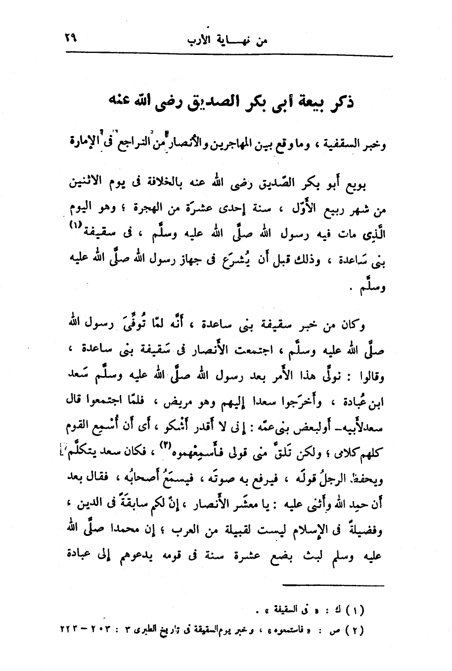 ذكر بيعة أبى بكر الصديق رضى الله عنه وخبر السقفية، وما وقع بين المهاجرين والأنصار من التراجع فى الإمارة