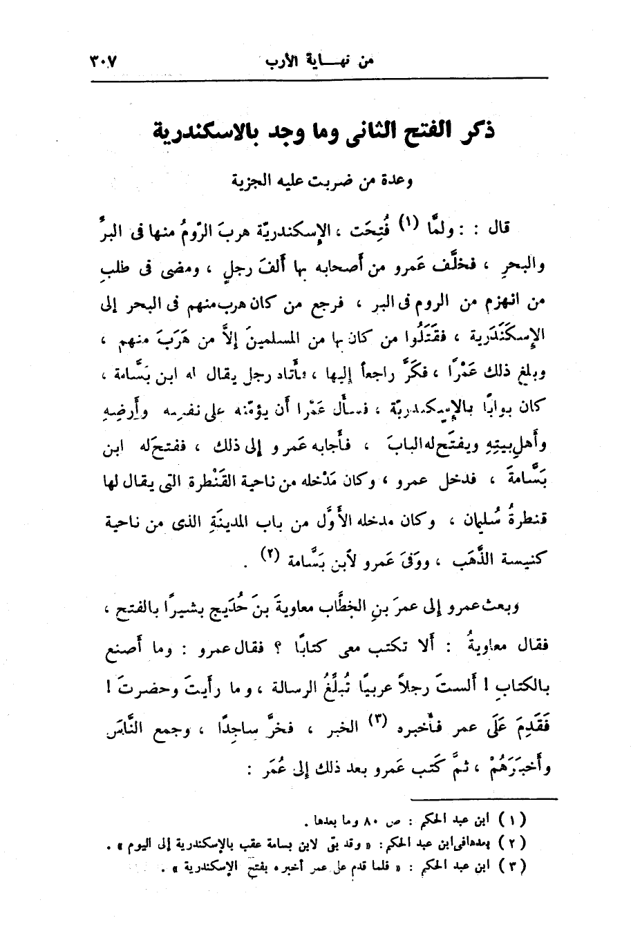 [3] ابن عبد الحكم: «فلما قدم على عمر أخبره بفتح الإسكندرية» .