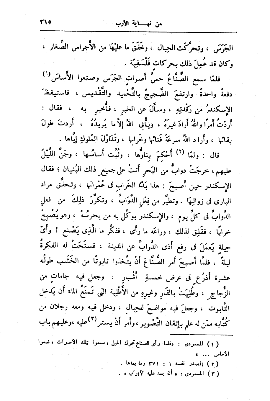 [1] المسعودى: «فلما رأى الصناع تحرك الحبل وسمعوا تلك الأصوات وضعوا الأساس ... » .