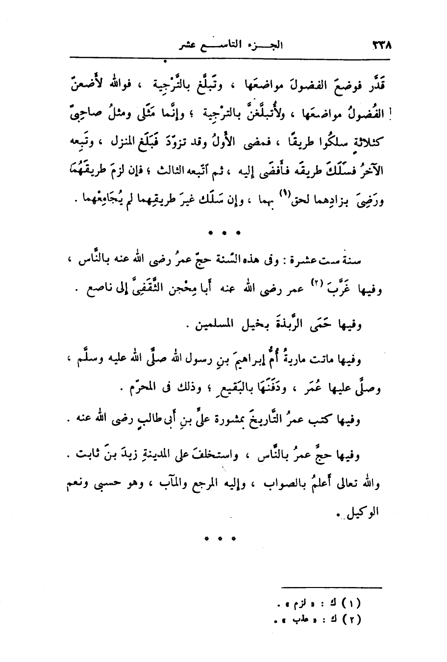 قدّر فوضع الفضول مواضعها، وتبلّغ بالتّرجية، فو الله لأضعنّ الفضول مواضعها، ولأتبلّغنّ بالترجية؛ وإنّما مثلى ومثل صاحبىّ كثلاثة سلكوا طريقا، فمضى الأول وقد تزوّد فبلغ المنزل، وتبعه الآخر فسلك طريقه فأفضى إليه، ثم اتّبعه الثالث؛ فإن لزم طريقهما ورضى بزادهما لحق [1] بهما، وإن سلك غير طريقهما لم يجامعهما.