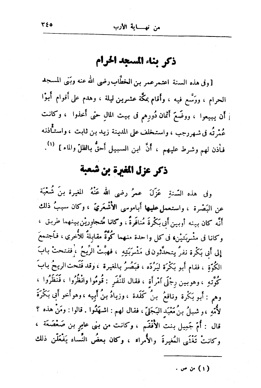 وفى هذه السّنة عزل عمر رضى الله عنه المغيرة بن شعبة عن البصرة، واستعمل عليها أبا موسى الأشعرىّ، وكان سبب ذلك أنّه كان بينه أو بين أبى بكرة منافرة، وكانا متجاورين بينهما طربق، وكانا فى مشربتين، فى كل واحدة منهما كوّة مقابلة للأخرى، فاجتمع إلى أبى بكرة نفر يتحدّثون فى مشربته، فهبّت الرّيح، ففتحت باب الكوّة، فقام أبو بكرة ليردّه، فبصر بالمغيرة، وقد فتحت الريح باب كوّته، وهو بين رجلى امرأة، فقال للنّفر: قوموا وانظروا، فنظروا، وهم: أبو بكرة ونافع بن كلدة، وزياد بن أبيه، وهو أخو أبى بكرة لأمّه، وشبل بن معبد البجلىّ، فقال لهم: اشهدوا. قالوا: ومن هذه؟
