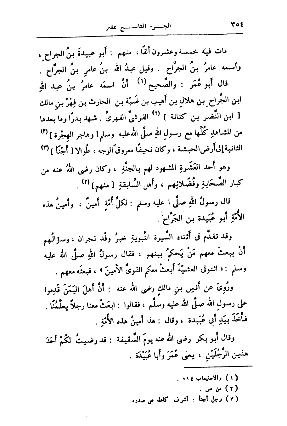 . وقد تقدّم فى أثناء السّيرة النّبوية خبر وفد نجران، وسؤالهم أن يبعث معهم من يحكم بينهم، فقال رسول الله صلّى الله عليه وسلم: «ائتونى العشيّة أبعث معكم القوىّ الأمين» ، فبعثه معهم.