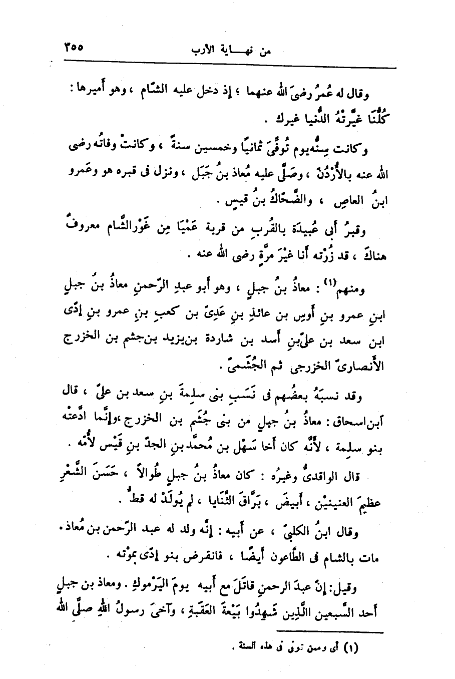 وقيل: إنّ عبد الرحمن قاتل مع أبيه يوم اليرموك. ومعاذ بن جبل أحد السّبعين الّذين شهدوا بيعة العقبة، وآخى رسول الله صلّى الله