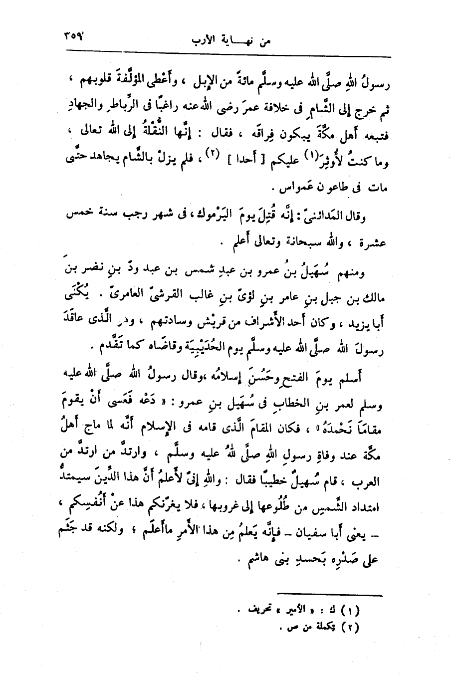 رسول الله صلّى الله عليه وسلّم مائة من الإبل، وأعطى المؤلّفة قلوبهم، ثم خرج إلى الشّام فى خلافة عمر رضى الله عنه راغبا فى الرّباط والجهاد فتبعه أهل مكّة يبكون فراقه، فقال: إنّها النّقلة إلى الله تعالى، وما كنت لأوثر [1] عليكم [أحدا] [2] ، فلم يزل بالشّام يجاهد حتّى مات فى طاعون عمواس.