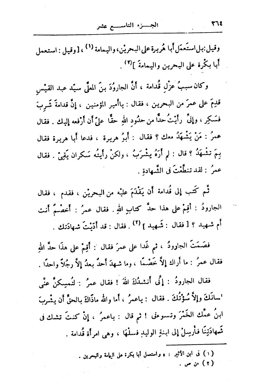 فصمت الجارود، ثم غدا على عمر فقال: أقم على هذا حدّ الله فقال عمر: ما أراك إلّا خصما، وما شهد أحد بعد إلّا رجلا واحدا.
