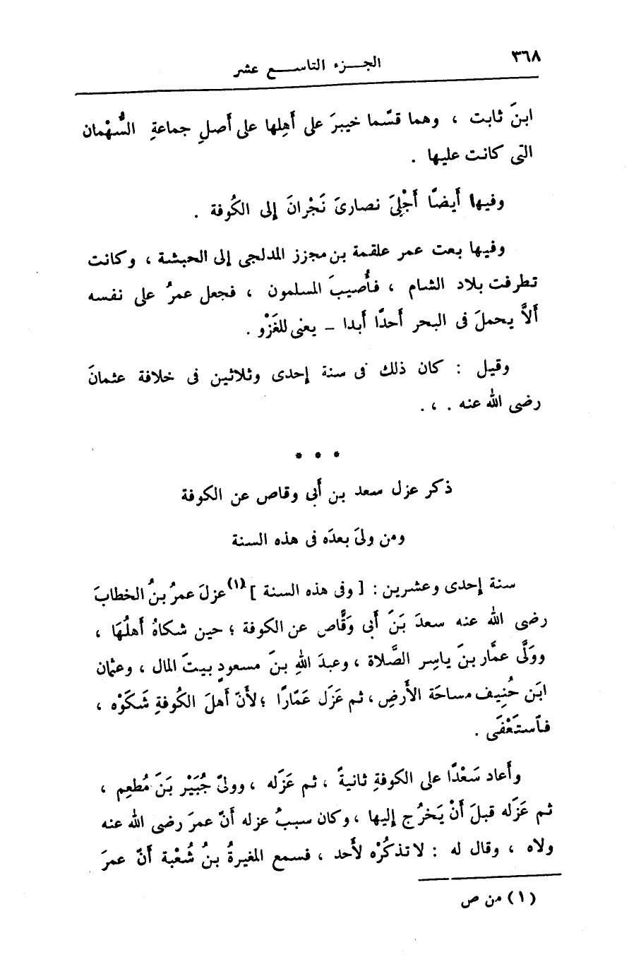 ذكر عزل سعد بن أبى وقاص عن الكوفة ومن ولى بعده فى هذه السنة