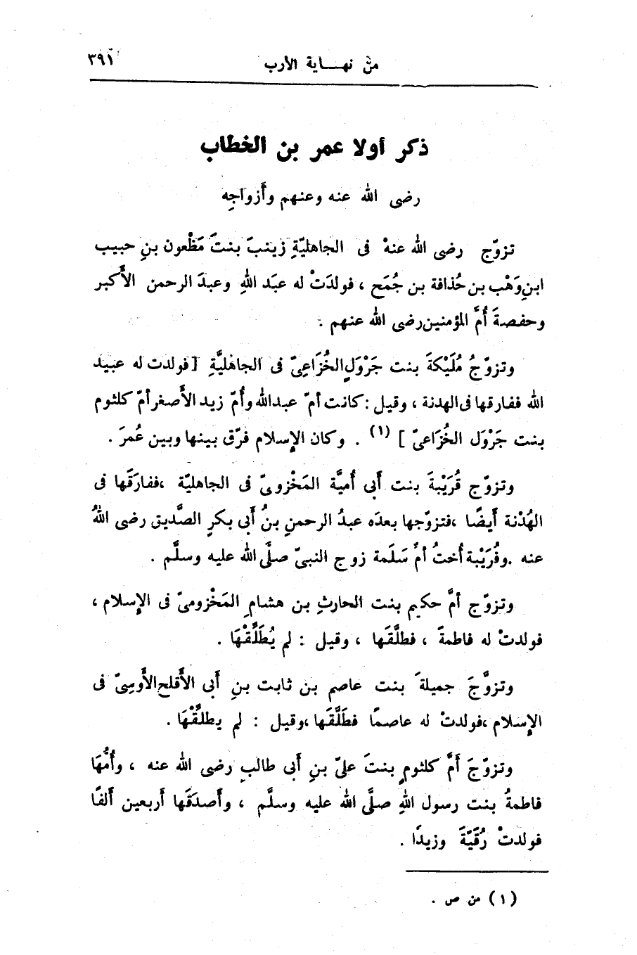 ذكر أولاد عمر بن الخطاب رضى الله عنه وعنهم وأزواجه